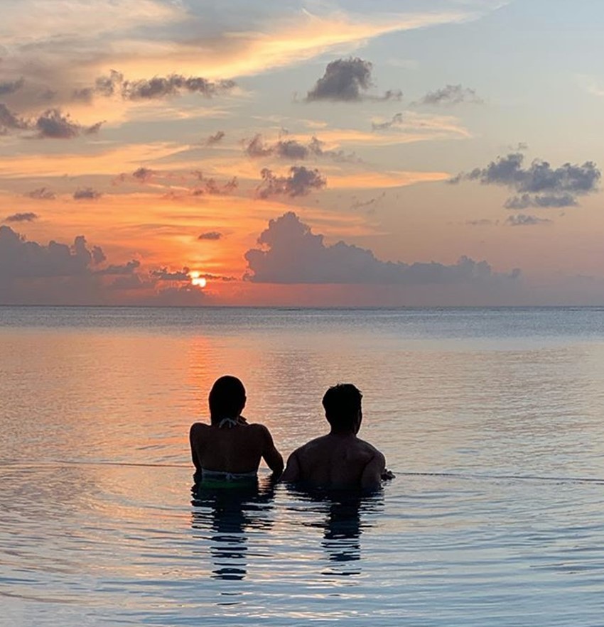 सन सेट को एंजॉय करते सारा और इब्राहिम।