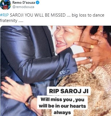 रेमो डिसूजा ने भी सरोज खान को एक तस्वीर के जरिए श्रद्धांजलि दी
