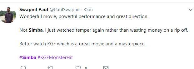 सिंबा और KGF को लेकर फैन्स तुलना कर रहे हैं। कुछ दर्शकों का कहना है कि केजीएफ सिंबा से बेटर है।