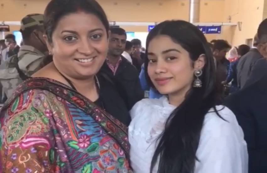 एयरपोर्ट पर अचानक हुई मुलाकात के दौरान स्मृति ईरानी और जाह्नवी कपूर के बीच काफी देर बात हुई। इस दौरान जाह्नवी उन्हें आंटी कहकर बुलाती रहीं। इसके बाद अचानक जाह्नवी ने ईरानी से आंटी कहने को लेकर मासूमियत से माफी भी मांग ली। जाह्नवी कपूर के इसी अंदाज पर स्मृति ईरानी फिदा हो गईं। इसके बाद एयरपोर्ट पर हुए इस वाकये को ईरानी ने कैमरे में कैद कर इंस्टाग्राम अकाउंट पर शेयर कर दिया।