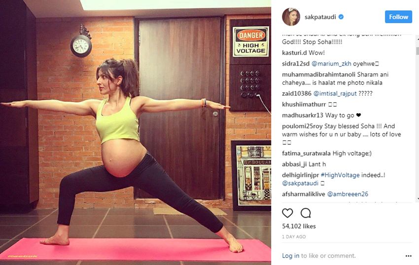 इंस्टाग्राम पर अपलोड की गई इस फोटो में उन्होंने हरे रंग का क्रॉप टॉप पहना हुआ है और एक योद्धा वाले पोज में खड़ी हैं। सोहा इन दिनों महिला का जीवन में आने वाले खूबसूरत चरण से गुजर रही हैं। प्रेग्नेंट एक्ट्रेस अपनी जिंदगी के हर क्षण को काफी एंज्यॉय कर रही हैं। प्रेग्नेंसी का ग्लो उनके चेहरे पर साफ दिख रहा है। हालांकि ऐसा लगता है कि बहुत से लोगों को सोहा का इस तरह योग करना पसंद नहीं आया। इसी वजह से बहुत से लोगों ने उनके लिए गलत शब्दों का इस्तेमाल करते हुए उनकी पोस्ट पर नकारात्मक कमेंट किए हैं। वहीं बहुत से लोगों ने तुम मिले एक्ट्रेस की सराहना की और उन्हें सपोर्ट किया।