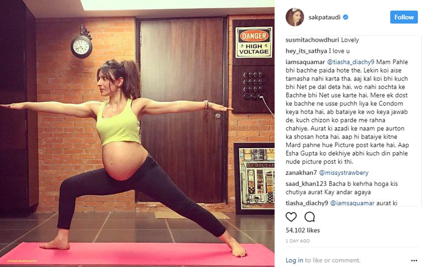 सोहा की पोस्ट पर iamsaquamar नाम के यूजर ने लिखा- मैम पहले भी बच्चे पैदा होते थे, लेकिन कोई ऐसे तमाशा नहीं करता था। आज कल कोई भी कुछ भी नेट पर डाल देता है वो नहीं सोचता के बच्चे भी नेट यूज करते हैं। मेरे एक दोस्त के बच्चे ने उससे पूछ लिया के कंडोम क्या होता है, अब बताइए के वो क्या जवाब दे। कुछ चीजों को पर्दे में रहना चाहिए। औरतों की आजादी के नाम पर औरतों का शोषण होता है। आप ही बताइए कितने मर्द पहने हुए पिक्चर पोस्ट करते हैं। आप ईशा गुप्ता को देखिए अभी कुछ दिन पहले न्यूड पिक्चर पोस्ट की थी।