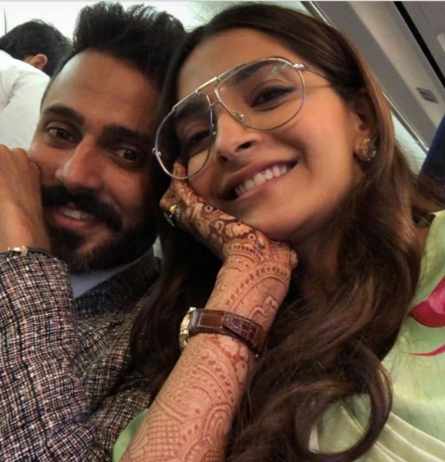 लवबर्ड्स सोनम कपूर और आनंद आहूजा 8 मई को सिख रीति-रिवाजों से शादी के बंधन में बंध गए हैं। शादी के बाद सोनम और आनंद की तस्वीरें सामने आई हैं। दिल्ली एयरपोर्ट पर सोनम और आनंद एक-दूसरे का हाथ थामे स्पॉट किए गए। लाइट ग्रीनम कलर की साड़ी और हाथों में मेहंदी सोनम कपूर को खूबसूरत ब्राइड लुक में नजर आ रही हैं। मीडिया रिपोर्ट्स के अनुसार, सोनम और आनंद ने कान फिल्म फेस्टिवल का हिस्सा बनने के लिए उड़ान भरी थी। सोशल मीडिया पर सोनम कपूर और आनंद आहूजा का एक वीडियो वायरल हो रहा है जिसमें वह दोनों फ्लाइट में मस्ती करते हुए नजर आ रहे हैं।