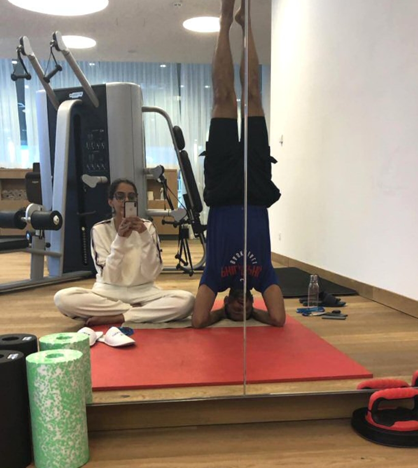 तस्वीर में आनंद आहूजा सिर के बल खड़े हुए हैं तो वहीं सोनम कपूर तस्वीर लेती नजर आ रही हैं। फोटो को देखकर पता लगता है कि दोनों जिम में एक साथ समय बिता रहे हैं। सोनम कपूर व्हाइट कलर के ट्रैक सूट में नजर आ रही हैं तो आनंद ब्लू कलर की टी-शर्ट और ब्लैक शॉर्ट्स में नजर आ रहे हैं। इसके पहले भी सोनम और आनंद की कॉफी डेट के वीडियो में सोनम अपनी फेवरेट कॉफी की चुस्की लेने के साथ ही फन करते हुए भी नजर आई थीं। सोनम और आनंद के इस वीडियो ने लोगों का ध्यान अपनी ओर खींचा था। पिछले कुछ सालों से ये अफवाह है कि सोनम और आनंद डेट कर रहे हैं, हालांकि दोनों ने कभी भी अपने रिश्ते को सार्वजनिक रूप से नहीं स्वीकारा है।