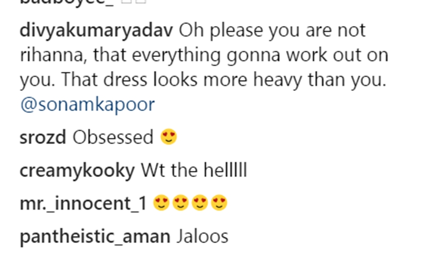सोनम कपूर के लिए एक यूजर ने लिखा, ‘इसे कोई बता, यह रेहाना नहीं है।’ बता दें, हाल ही में सोनम की शादी हुई। अपनी शादी को लेकर सोनम खासा चर्चाओं में बनी रहीं। वहीं सोनम ने अपनी कलाई में मंगलसूत्र बांधा था। इस दौरान एक्ट्रेस मंगलसूत्र को नए तरह से इस्तेमाल करने को लेकर फैशनीस्टा कही जाने लगी थीं।