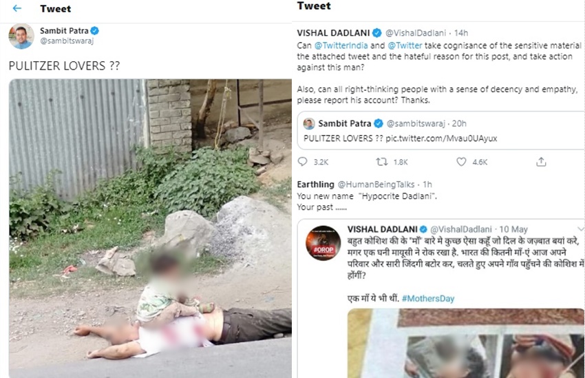 बता दें, संबित पात्रा ने बच्चे की दर्दनाक तस्वीर शेयर करते हुए कैप्शन लिखा था ‘पुलित्ज़र लवर?’ इस तस्वीर को देख कर सोशल मीडिया पर कई लोग भावुक होते दिखे, तो कई रोष में आ गए। सोशल मीडिया पर लोगों ने संबित को भी ट्रोल करने की कोशिश की।