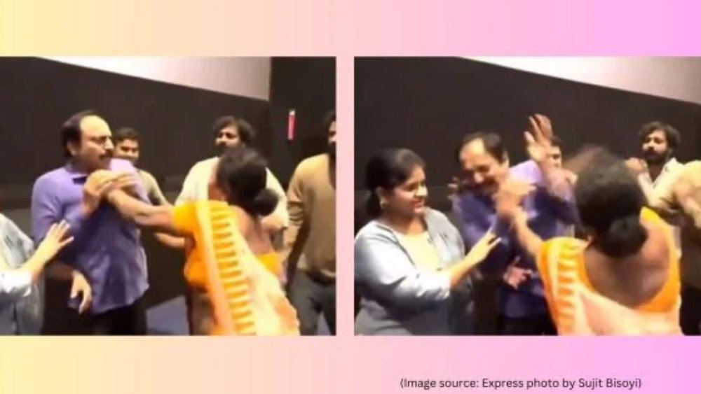 वायरल वीडियो में देखा जा सकता है कि थिएटर की स्क्रीन पर फिल्म चल रही है और उसके बाद फिल्म की स्टार कास्ट स्टेज पर खड़ी होती है और तभी एक महिला स्टेज पर आती है और एनटी रामास्वामी की पिटाई करने लगती है। पहले महिला एक्टर का कॉलर पकड़ती है और फिर उन्हें पीटना शुरू करने लगती है। रामास्वामी भी समझ नहीं पाते कि उनके साथ क्या हो रहा है। वहां मौजूद लोग महिला को संभालते हुए नजर आ रहे हैं।