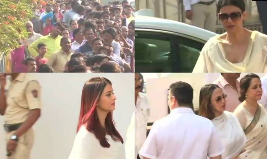 देश की पहली लेडी सुपरस्टार श्रीदेवी कपूर का कुछ ही देर में अंतिम संस्कार किया जाएगा। वहीं इससे पहले श्रीदेवी के पार्थिव शरीर को मोगरा के फूलों से सजाया गया है। इस दौरान श्रीदेवी को आखिरी बार दुल्हन की तरह सजाया जा रहा है। श्रीदेवी को लाल रंग की बनारसी साड़ी पहनाई गई है। वहीं उन्हें लिप्सटिक, बिन्दी, काजल और पाउडर लगाया गया है। श्रीदेवी के पार्थिव शरीर के पास सोनम कपूर,अर्जुन कपूर और आनंद अहूजा खड़े हैं। वहीं बोनी कपूर के छोटे भाई और श्रीदेवी के देवर संजय कपूर श्रीदेवी के अंतिम दर्शनों के लिए आए बॉलीवुड सेलेब्स की देखरेख करते नजर आ रहे हैं। बोनी कपूर अपनी दोनों बच्चियां खुशी कपूर और जाह्नवी कपूर के साथ खड़े दिखाई दिए।