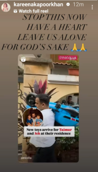 करीना ने इस रील को अपनी इंस्टाग्राम स्टोरी पर शेयर करते हुए लिखा, “थोड़ा तो दिल से सोचो, ये सब बंद करो, हमें अकेला छोड़ दो।” हालांकि कुछ ही मिनटों में करीना ने इस स्टोरी को डिलीट कर दिया। बता दें कि करीना कपूर, उनके बच्चों और परिवार के लिए ये समय काफी मुश्किल है।