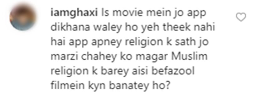 एक ने कमेंट किया- इस फिल्म में जो आप दिखाने वाले हो ये ठीक नहीं है। आप अपने धर्म के साथ जो मर्जी चाहें करो मगर मुस्लिम धर्म के बारे में ऐसी फिजूल फिल्में क्यों बनाते हो। एक और यूजर ने लिखा- मुस्लिम ही क्यों??