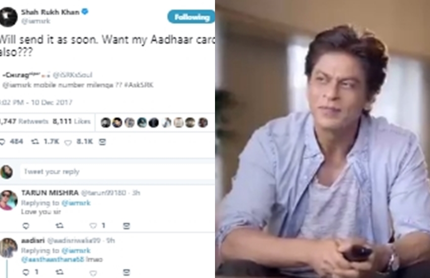 वहीं एक यूजर शाहरुख का नंबर मांगने लगता है। तो इस पर शाहरुख भी बड़े अलग अंदाज में उन्हें जवाब देते हैं। यूजर पूछता है, ‘मोबाइल नंबर मिलेगा?’। इसका जवाब शाहरुख देते हैं, ‘जल्द से जल्द आप तक पहुंचाता हूं। आपको आधार कार्ड भी चाहिए?’