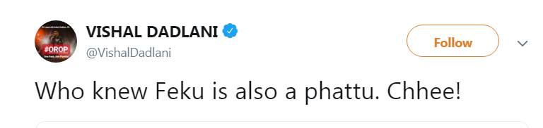 विशाल ददलानी ने ट्वीट में लिखा- ‘कौन जानता था कि फेकू फट्टू भी है..छी।’ विशाल के इस ट्वीट पर उनके फैन्स ने भी अपना रिएक्शन दिया है। एक यूजर ने लिखा- ‘नियम तो नियम होता है, लेकिन आपकी जली पड़ी है।’ वहीं एक अन्य यूजर लिखता है- ‘इसकी भाषा देखकर लगता है कि असल जिंदगी में इससे बेसुरा कोई और नहीं।’ एक ट्विटर यूजर ने लिखा- ”यदि नामांकन रद्द होने का कारण सही है और नियमों के मुताबिक उसकी उम्मीदवारी खारिज कर दी गई है, क्या इसमें मोदी जी जिम्मेदारी हैं?”