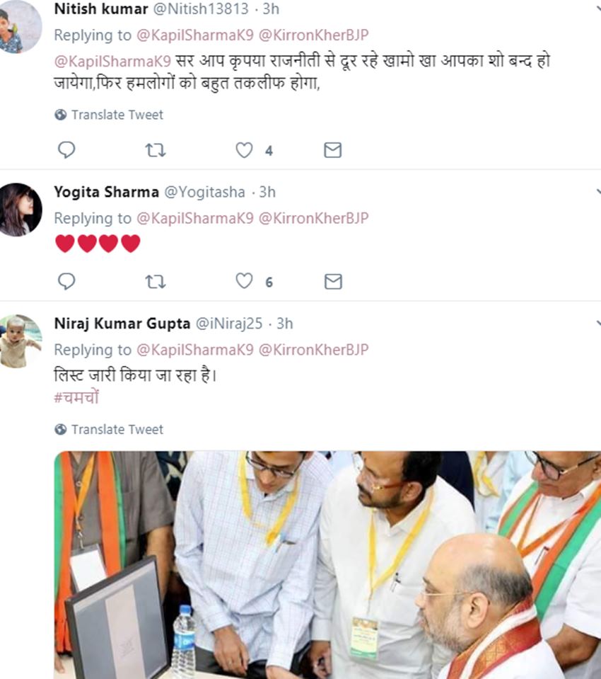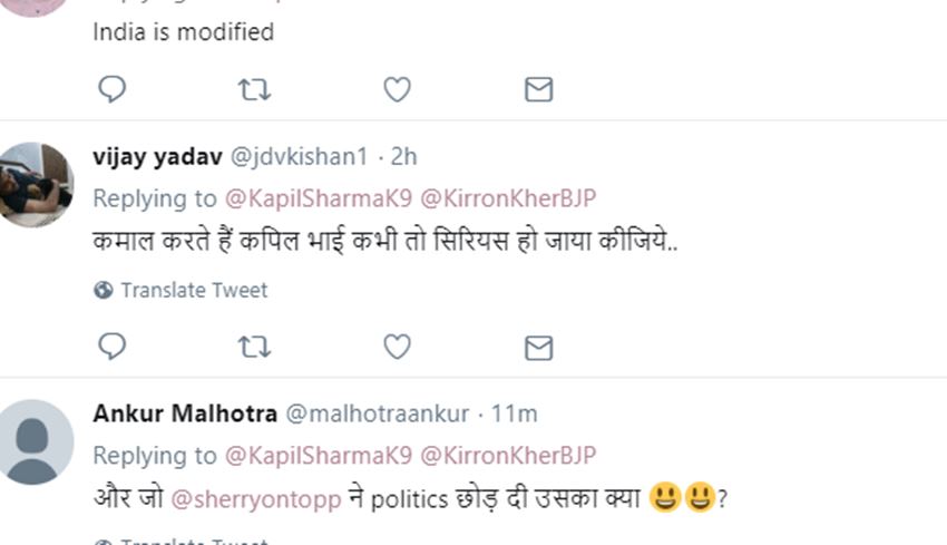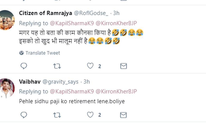 कपिल ने अपने ट्विटर से किरण खेर को मुबारकबाद देते हुए लिखा- ‘बहुत-बहुत बधाई किरण खेर जी। भगवान से दुआ है कि आप ऐसे ही अपनी मेहनत और लगन से काम करती रहें। और लोगों के दिलों पर राज करती रहें। हमें आप पर गर्व है।’ कपिल के इस ट्वीट को देख कर यूजर्स उनसे कई सारे सवाल पूछते हुए उनके इस ट्वीट का मजाक उड़ाते दिखे।