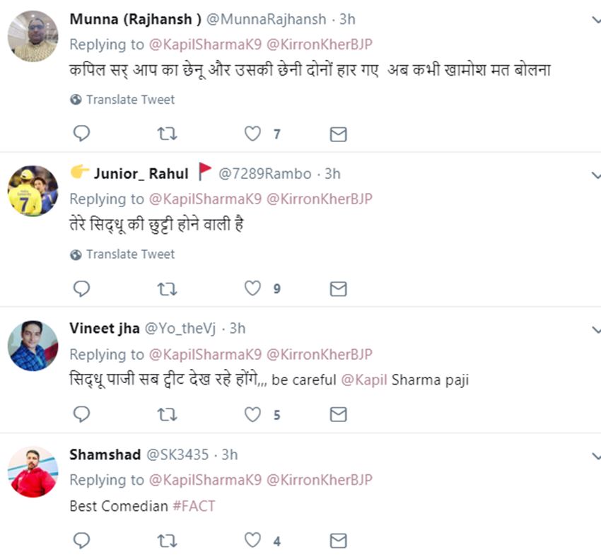 कपिल शर्मा के कई फॉलोअर्स कहते दिखे कि ‘अच्छा आप भली भांति जानते हैं कि उन्होंने क्या काम किया है।’ तो कोई कपिल से नवजोत सिंह सिद्धू के बारे में सवाल करता दिखा। तो वहीं कोई यूजर कहता नजर आया- ‘कमाल करते हो भाई कभी तो सीरियस हो जाया करो।’