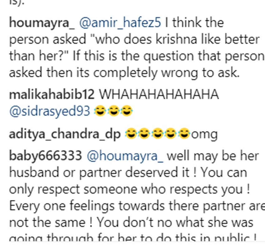 कश्मीरा ने ऐसा सवाल उनके सामने पति कृष्णा से पूछे जाने पर आपत्ति जताई। कश्मीरा ने रिपोर्टर से कहा, “आप क्या सवाल पूछ रहे हैं? आखिर क्या पूछा आपने कि मेरे पति मुझसे ज्यादा किसे पसंद करते हैं? क्या बकवास सवाल था ये? क्या आप स्टूपिड हैं, मूर्ख हैं आप? आपने गलत सवाल पूछा है। चुप रहो, तुमने गलत सवाल पूछा है। ये कोई सवाल नहीं है जो आप किसी को पूछें। समझे? जैसे आप मुझसे बिहेव करोगे, मैं भी आपके साथ वैसा ही बिहेव करूंगी। यह डीसेंट सवाल बिल्कुल भी नहीं था।”