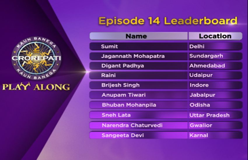 बता दें हॉटसीट पर बैठे कंटेस्टेंट की तरह आपको भी हर सवाल का सही जवाब देना पड़ेगा। हर नंबर के सावल के लिए आपको अलग-अगल पॉइंट्स दिए जाएंगें।इन पॉइंट्स को आपको इकट्ठा करना है। ऐसे में जिस दर्शक के सबसे ज्यादा पॉइंट्स होंगे उसे विनर लिस्ट में जगह मिलेगी। हर रोज 10 प्रतिभागियों को विनर लिस्ट में शामिल होने का मौका मिलता है। पिछले एपिसोड के विनर्स की लिस्ट है ये:-