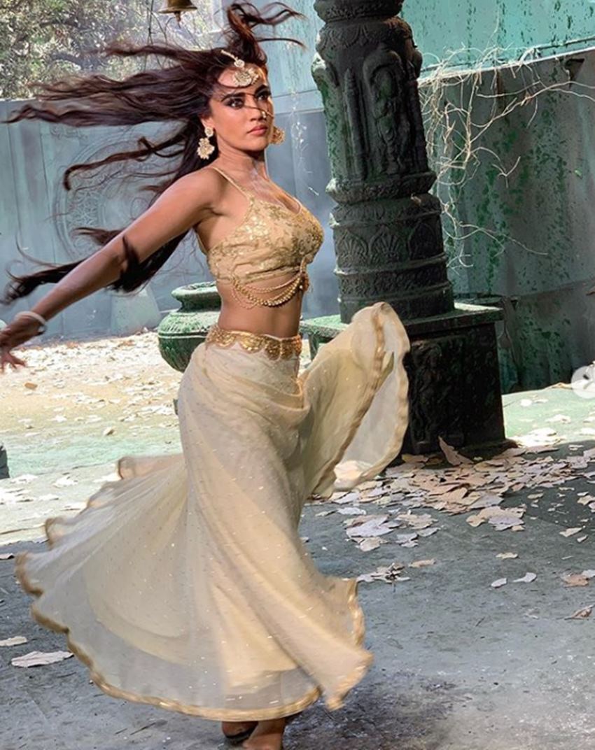 मौनी रॉय शो के सेट पर नागिन अवतार में तैयार नजर आ रही हैं।