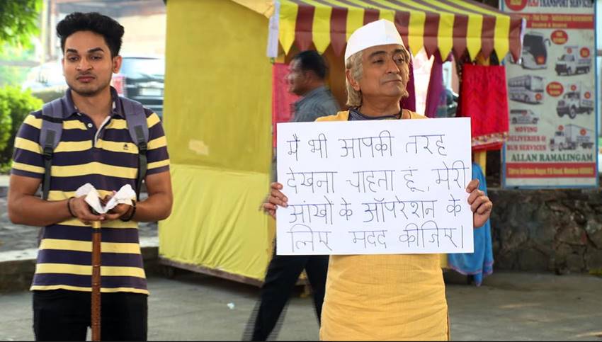 यह कहकर वह छात्र बापूजी के हाथ एक फलक थमा देते है जिसमे मदद करने का सन्देश लिखा हुआ होता है। राहगीरों से पैसे इकट्ठा होने के बाद वह छात्र जमा किये हुए पैसे बापूजी को देने के बजाय वह लेकर भाग जाते हैं।