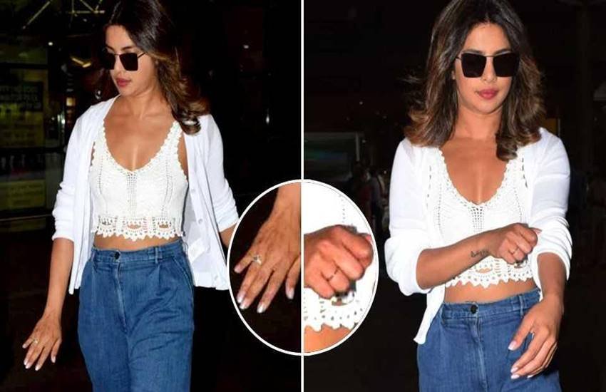 दो महीने एक दूसरे को ड़ेट करने के बाद प्रियंका चोपड़ा ने निक जोनास के साथ सगाई कर ली है। सोशल मीडिया के साथ ही साथ प्रियंका के फैन्स भी उनके इस फैसले से काफी हैरत में थे। हाल ही में मुंबई एयरपोर्ट पर प्रियंका के हाथ में बड़े डायमंड की रिंग दिखाई देने के बाद, उनकी इंगेजमेंट की चर्चा फिर से तेज हो गई है लेकिन प्रियंका ने बड़ी आसानी से इस रिंग को छिपा लिया। दरअसल प्रियंका चोपड़ा बीते दिनों मुंबई एयरपोर्ट पर बैगी डेनिम और वाइट कैजुअल्स में दिखाई दीं थी। इस दौरान उन्होंने अपने हाथ में डायमंड की रिंग भी पहनी हुई थी। प्रियंका एयरपोर्ट से निकल ही रही थीं कि उन्हें अचानक एहसास हो गया कि एयरपोर्ट पर पापाराज़ी या पत्रकार हो सकते हैं, इसलिए उन्होंने अपनी रिंग को छिपाने की कवायद शुरू कर दी। उन्होंने रिंग छिपाने के लिए अपना हाथ पॉकेट में डाला और एयरपोर्ट से बाहर निकल गईं।