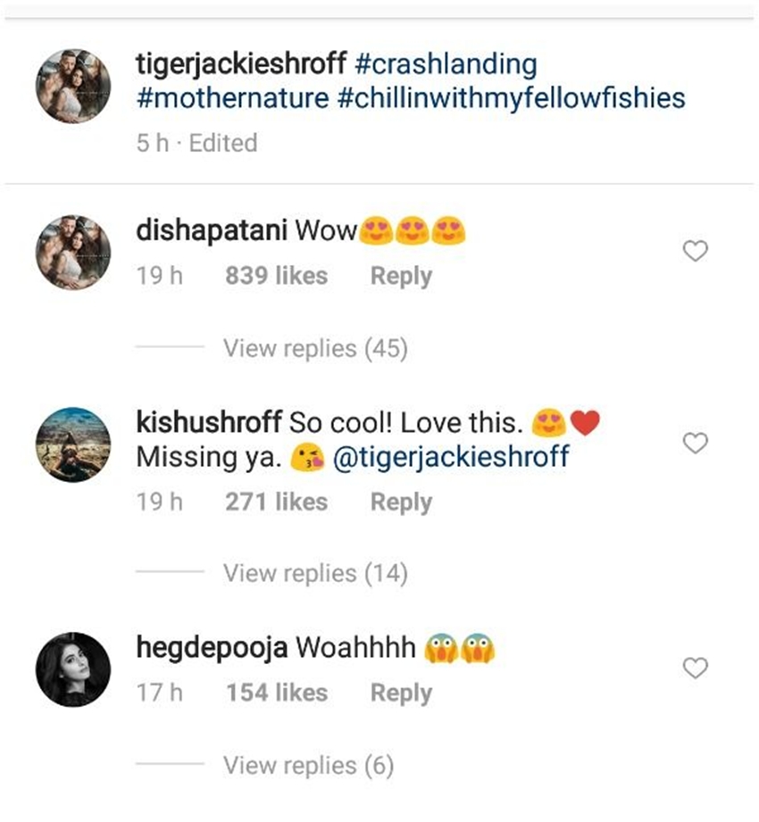 इतना ही नहीं टाइगर के वीडियो पर दिशा पाटनी ने कमेंट भी किया है। दिशा ने वीडियो के कमेंट बॉक्स में लिखा wow तो वहीं टाइगर की बहन कृष्णा श्रॉफ ने कमेंट बॉक्स में लिखा, यह बहुत कूल है, मिस कर रही। कहा जाता है कि दिशा पाटनी टाइगर की फैमिली के बेहद करीब हैं। दिशा की टाइगर की मां आयशा से काफी अच्छी बॉन्डिग हैं तो वहीं बहन कृष्णा के साथ ही अच्छी दोस्ती है। दिशा और टाइगर के इस सीक्रेट हॉली-डे के बाद दोनों के रिश्ते में होने की अफवाहों ने जोर पकड़ लिया है।