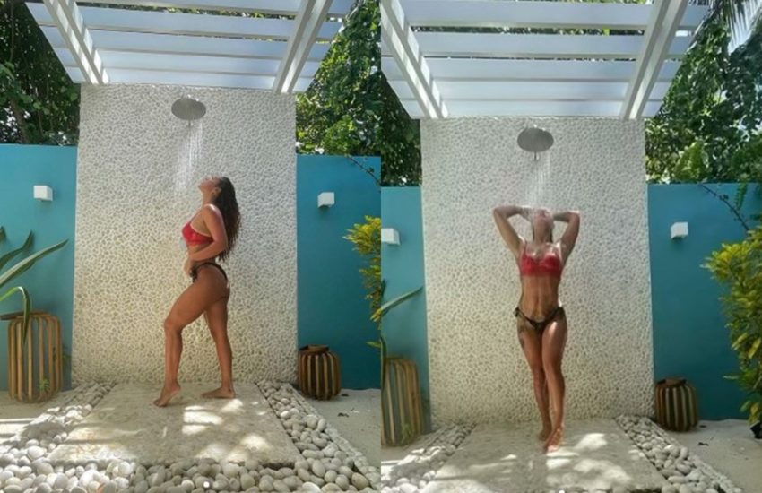 कृष्णा स्कूबा डाइविंग करते वक्त रेड-ब्लैक बिकिनी पहने दिख रही हैं। वहीं शॉवर लेते हुए भी कृष्णा उसी बिकिनी में नजर आ रही हैं, इससे अंदाजा लगाया जा सकता है कि उन्होंने स्कूबा डाइविंग के बाद अपने रेजॉर्ट में शॉवर लिया है।