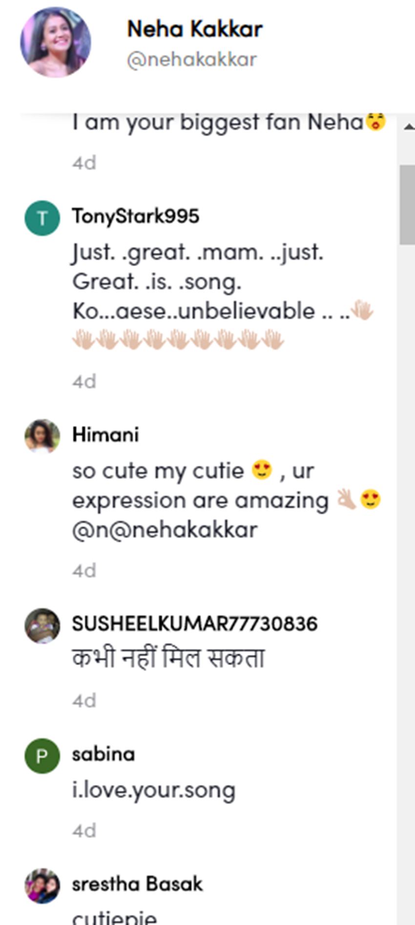 नेहा का ये फनी सॉन्ग फैन्स के बीच काफी पॉपुलर हो रखा है। ऐसे में इस गाने को कई सारे रिएक्शन्स भी मिल रहे हैं। टिक-टॉक ऐप के जरिए बनाए गए इस वीडियो में नेहा काफी क्यूट लग रही हैं। वहीं टिक-टॉक यूजर्स नेहा के इस फनी गाने को देख कर कहते नजर आ रहे हैं- ‘नेहा तुम अन बिलीवेबल हो’, तो एक यूजर लिखता- ‘कभी नहीं मिल सकता।’ तो कोई कहता नजर आया- ‘भगवान सुनेगा नेहा जी।’ तो एक फैन ने लिखा- ‘हम जैसे कुंवारों की दुआ है कि आपको आपका प्यार मिल जाए’। देखें नेहा का ये टिक-टॉक वीडियो:-