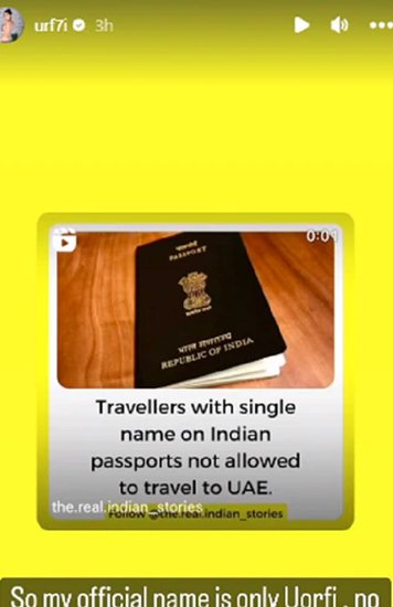 इंटरनेट सेंसेशन उर्फी जावेद किसी न किसी वजह से सुर्खियों में रहती हैं। हाल ही में उर्फी ने बताया कि वो यूएई नहीं जा सकतीं, क्योंकि उन्हें यूएई जाने की अनुमति ही नहीं है। उर्फी ने अपने इंस्टाग्राम अकाउंट पर स्टोरी शेयर की है। जिसमें उन्होंने अपने पासपोर्ट की तस्वीर पोस्ट करते हुए कारण बताया।
