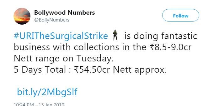 — taran adarsh (@taran_adarsh) January 15, 2019
