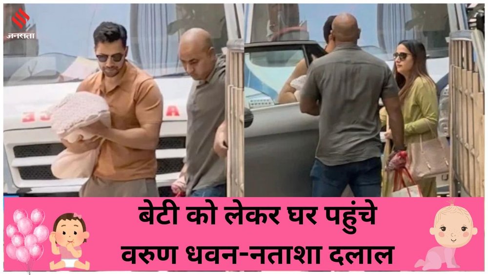 अभिनेता वरुण धवन और उनकी पत्नी नताशा दलाल सोमवार को बेटी के माता-पिता बन गए। 5 दिन बाद शुक्रवार दोपहर को वरुण और नताशा बेटी को लेकर अस्पताल से घर की ओर जाते नजर आए। वरुण ने बच्ची को अपनी बाहों में लिया और सीने से चिपकाए हुए कार की तरफ जाते दिखे। फोटोग्राफर्स ने वरुण और नताशा को बेटी के साथ जाते तस्वीरें क्लिक की।