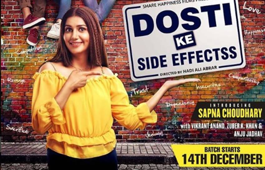 बिग बॉस 11 की एक्स कंटेस्टेंट और हरियाणा की पॉपुलर सिंगर और डांसर सपना चौधरी अब एक्टिंग में भी हाथ आजमाने के लिए तैयार हैं। ऐसे में सपना चौधरी की फिल्म का मोशन पोस्टर सामने आया है। सपना की इस अपकमिंग डेब्यू फिल्म का नाम है- ‘दोस्ती के साइड इफेक्ट्स’। दोस्तों के बीच बुनी गई इस प्यारी सी कहानी की टैग लाइन भी दिल को छू लेने वाली है- ‘पक्की यारी कभी न हारी’। सपना ने अपने इंस्टाग्राम अकाउंट से अपनी फिल्म का एक पोस्टर शेयर किया था, जिसमें उन्होंने पीले रंग का टॉप पहना हुआ है।