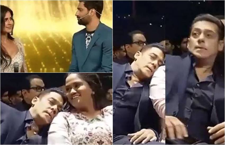 तभी विक्की सलमान खान की फिल्म का गाना गाने लगते हैं, ‘मुझसे शादी करोगी?’ विक्की के इसी गाने के बाद सलमान खान अपने बगल में बैठी बहन अर्पिता के कंधे पर जा गिरते हैं। इस बीच कैटरीना विक्की के सवाल का जवाब देती हैं, ‘हिम्मत नहीं है।’ सलमान कैट का जवाब सुनते ही दोबारा खड़े हो जाते हैं और स्माइल करने लगते हैं।