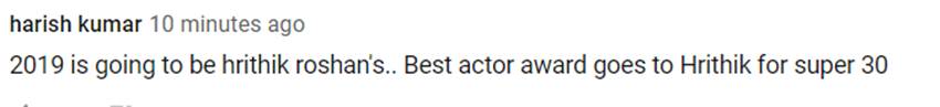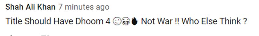 फिल्म के टीजर को देखने के बाद लोग अपना रिएक्शन कमेंट बॉक्स में जाहिर कर रहे हैं। एक सोशल मीडिया यूजर ने लिखा- सुपर 30 के बाद ऋतिक ने एक बार फिर से शानदार परफॉर्मेंस दी है। फिल्म की रिलीज का इंतजार है। वहीं एक अन्य यूजर ने लिखा- साल 2019 ऋतिक के नाम होने वाला है। संभव है कि ऋतिक को बेस्ट एक्टर का भी खिताब मिल जाए। वहीं कई सारे लोगों ने टाइगर के एक्शन को भी सराहा है। कई सारे यूजर्स ने लिखा कि फिल्म का टाइटल धूम-4 होना चाहिए था। ‘वॉर’ के टीजर को कुछ ही घंटों में 5 लाख के करीब व्यूज मिल गए हैं। ‘वॉर’ फिल्म 2 अक्टूबर को सिनेमाघरों में रिलीज होगी।