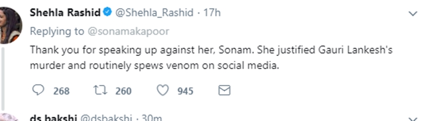 शहला राशिद नाम की एक ट्वीटर कहती हैं, ‘शुक्रिया कि आपने इनके खिलाफ आवाज उठाई.. सोनम।’ बता दें, ‘सीक्रेट सुपरस्टार’ एक्ट्रेस जायरा वसीम के साथ विमान में छेड़खानी की घटना हुई थी। इसके बाद जायरा ने सोशल मीडिया पर इस घटना को जगजाहिर किया था। इसके बाद सोशल मीडिया प्लैटफॉर्म पर इसे लेकर खूब बातें हुईं। कई ट्वीट्स में जायरा के रवैये पर भी सवाल उठाए गए। इसके बाद जब लोगों ने जागृति को ट्रोल करना शुरू किया तो वे नाराज हो गईं।