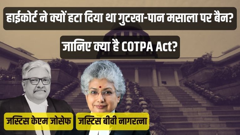 मद्रास हाईकोर्ट ने गुटखा-पान मसाला जैसे प्रोडक्ट पर बैन के तमिलनाडु सरकार के फैसले को रद्द कर दिया था। सुप्रीम…
