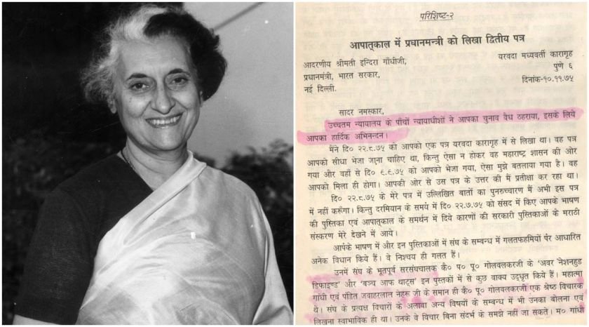 एक तरफ आरएसएस नेता नानाजी देशमुख आपातकाल विरोधी आन्दोलन में जेपी के साथ लाठी खा रहे थे, वहीं दूसरी तरफ तत्कालीन सरसंघचालक मधुकर दत्तात्रेय देवरस उर्फ बाला साहब देवरस इंदिरा गांधी को चिट्ठी लिखकर RSS को आपातकाल विरोधी आंदोलन से अलग बता रहे थे।