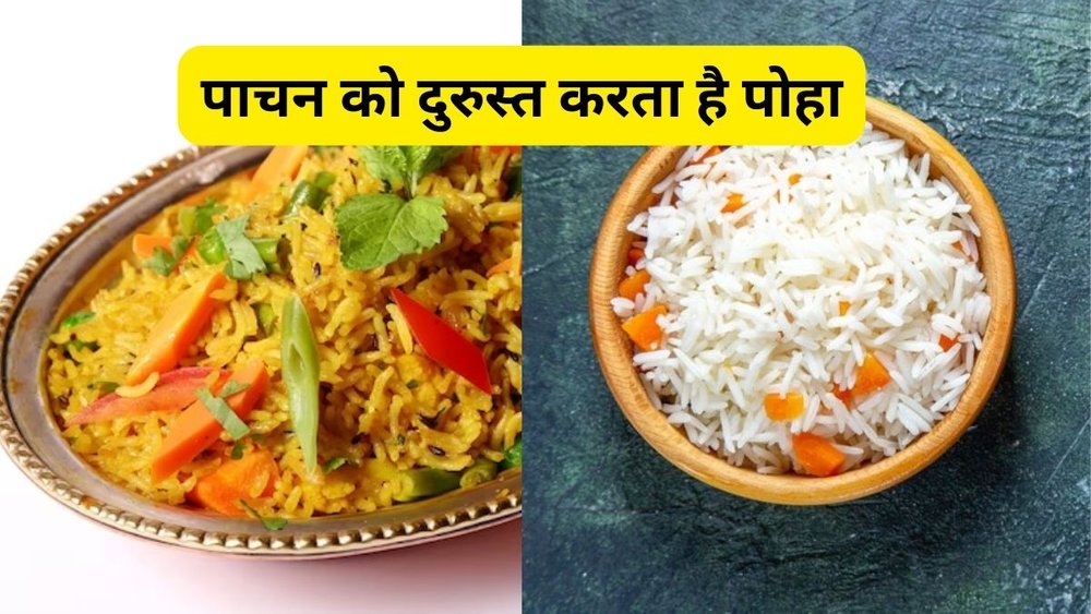 - चावल की तुलना में इसे पचाना आसान होता है। पोहा को नाश्ते और शाम के नाश्ते में खाया जा सकता है। इसका सेवन करने से पाचन दुरुस्त रहता है और बॉडी में इंफ्लामेशन कम होता है। पोहा में कुछ सब्जियां, नमक, एक बड़ा चम्मच सरसों का तेल डालें और इसे पकाकर उसका सेवन करें सेहत को फायदा होगा।