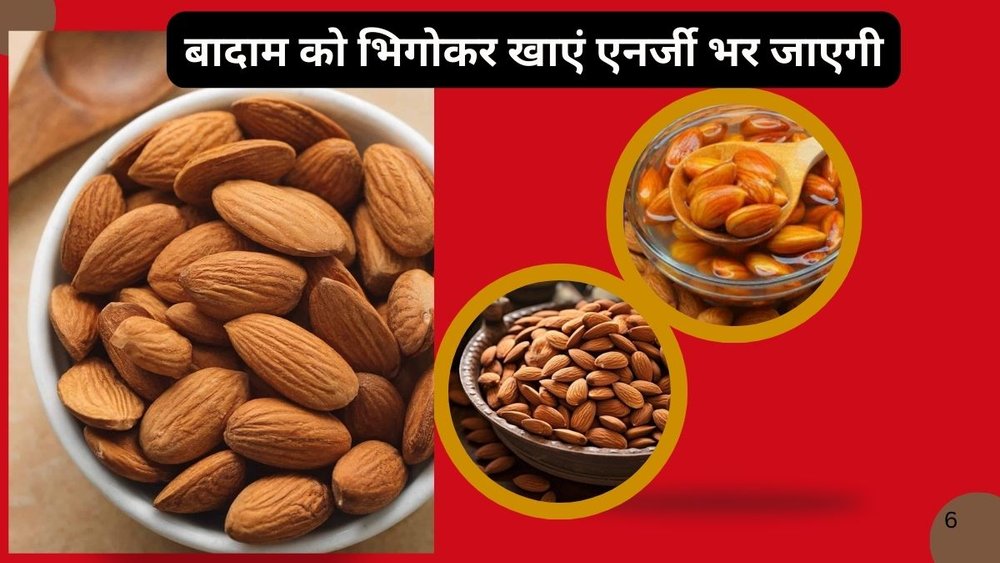 भिगोए हुए बादाम का सेवन करने से शरीर को धीरे-धीरे और लगातार एनर्जी मिलती है। इनमें हेल्दी फैट, प्रोटीन और फाइबर होता है दिनभर बॉडी में एनर्जी के स्तर को बनाए रखने में मदद करता है। रोज 5 बादाम खाने से थकान कम होती है और चाय-कॉफी पर निर्भरता घटती है।