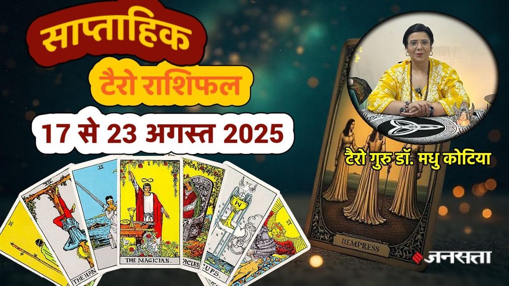 Weekly Tarot Reading 17 T0 23 August 2025 (साप्ताहिक टैरो राशिफल 17 से 23 अगस्त 2025): अगस्त माह का तीसरा सप्ताह कई राशि के जातकों के लिए लाभकारी हो सकता है। इस सप्ताह कई ग्रह-नक्षत्र राशि परिवर्तन कर रहे है। इस सप्ताह दैत्यों के गुरु शुक्र राशि परिवर्तन करके कर्क राशि में प्रवेश करेंगे, जहां पर पहले से ही बुध ग्रह विराजमान है। ऐसे में बुध और शुक्र की युति से लक्ष्मी नारायण योग का निर्माण होगा। इसके साथ ही सप्ताह के पहले दिन ही ग्रहों के राजा सूर्य अपनी राशि सिंह में प्रवेश कर जाएंगे, जिससे केतु के साथ युति होगी। मंगल कन्या राशि में रहेंगे, जिससे मीन राशि में विराजमान वक्री शनि के साथ समसप्तक और कुंभ राशि में विराजित राहु के साथ षडाष्टक योग का निर्माण हो रहा है। टैरो मेंटर व आध्यात्मिक हीलर डॉ. मधु कोटिया के अनुसार, अगस्त माह का ये सप्ताह कई राशि के जातकों की किस्मत को चमका सकता है। लंबे समय से रुके काम पूरे होने के साथ-साथ नई नौकरी मिलने के अवसर मिल सकते हैं। आइए जानते हैं मेष, वृष, मिथुन, कर्क, सिंह, कन्या, तुला, वृश्चिक, धनु, मकर, कुंभ, मीन राशि का साप्ताहिक टैरो राशिफल…