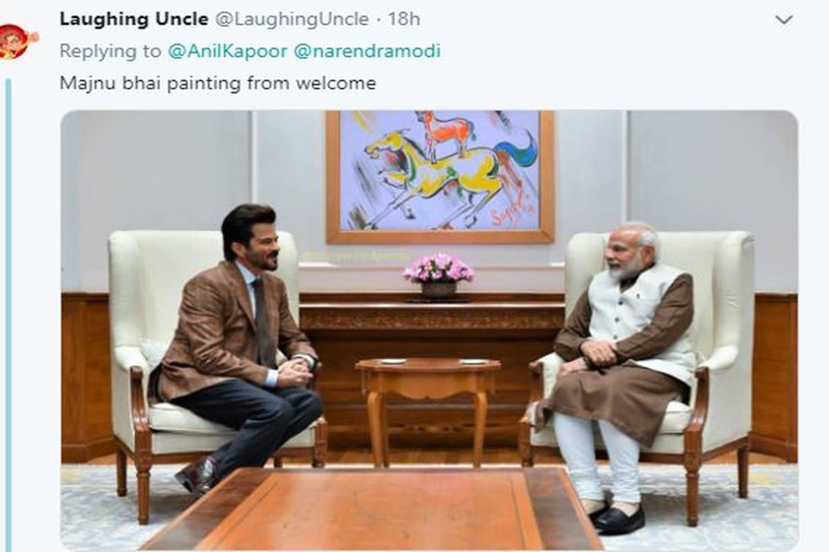 अनिल कपूर की शेयर की तस्वीर पर कुछ ट्विटर यूजर आपस में भिड़ गए। समुदाय विशेष के लोगों ने इस तस्वीर पर लड़ाई छेड़ दी। लेकिन मौज लेने वालों ने किसी पर ध्यान न देते हुए अपनी बातें और तस्वीरें शेयर करते रहे। एक यूजर ने अनिल कपूर और पीएम मोदी की तस्वीर को एडिट कर पोस्ट कर दी। जहां पहले दोनों की तस्वीर में पीछे एक पेंटिंग भी दिकाई पड़ती है। जिसे यूजर ने एडिट करके अनिल कपूर की वेलकम फिल्म की तस्वीर लगा कर शेयर कर दी।