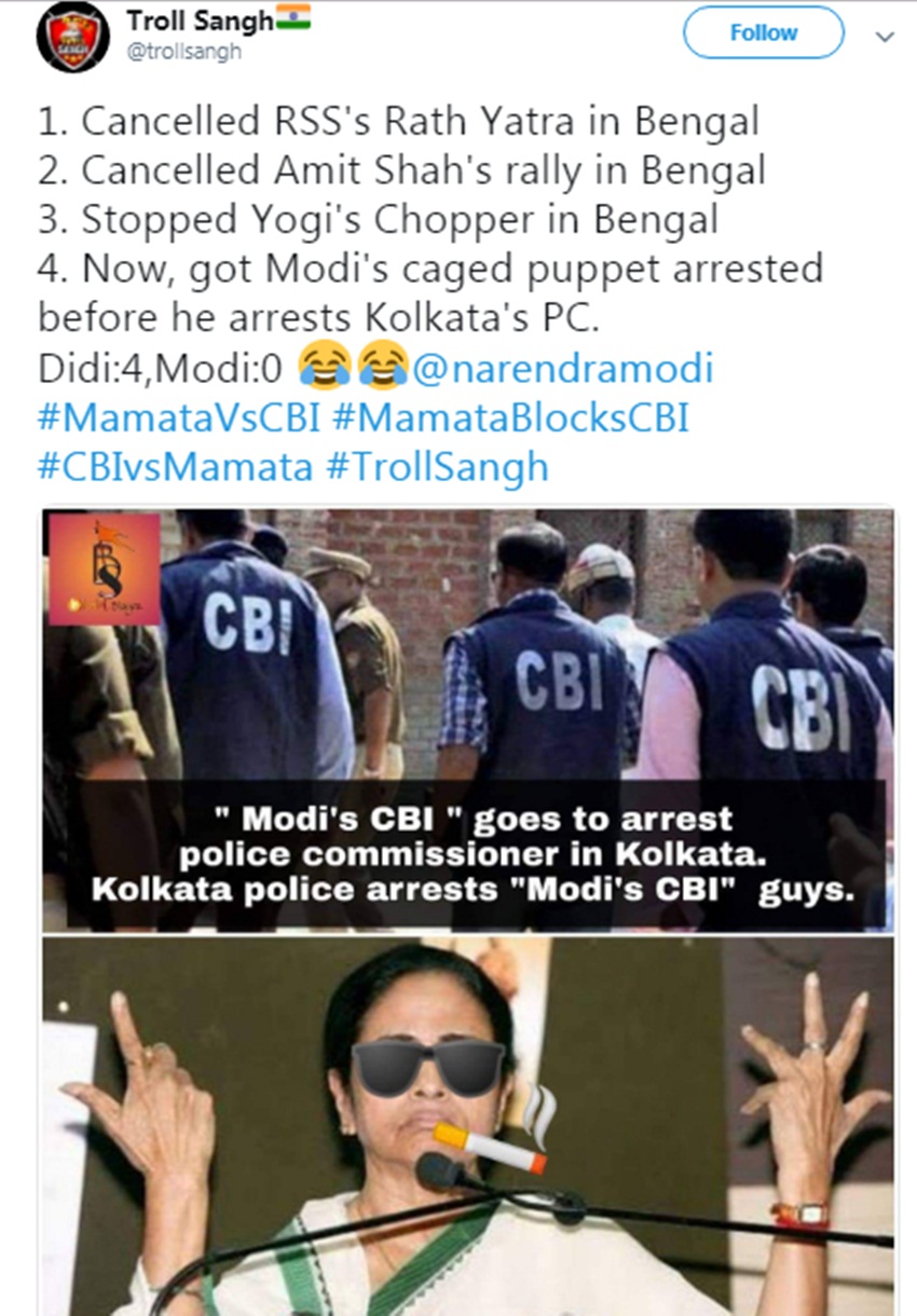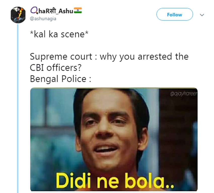 CBI vs Kolkata Police मामले में आपको कई तरह की प्रतिक्रियाएं देखने को मिल रही हैं। बीजेपी ममता बनर्जी सरकार पर हमला बोले हुए है तो तमाम विपक्षी दल केंद्र की मोदी सरकार की आलोचना कर रहे हैं। मामला कोलकातो में हुए चिटफंड घोटाले की जांच का है। सीबीआई 3 फरवरी को कोलकाता पुलिस कमीश्नर राजीव कुमार से पूछताछ करने पहुंची थी लेकिन कोलकाता पुलिस ने सीबीआई की टीम को रोक दिया और अधिकारियों को हिरासत में लिया था।सीबीआई ने मामले को लेकर आज(5 फरवरी) सुप्रीम कोर्ट में गुहार लगाई। सुप्रीम कोर्ट ने कुमार को सीबीआई के समक्ष पेश होकर सभी अवसरों पर जांच में सहयोग करने के निर्देश दिए हैं।