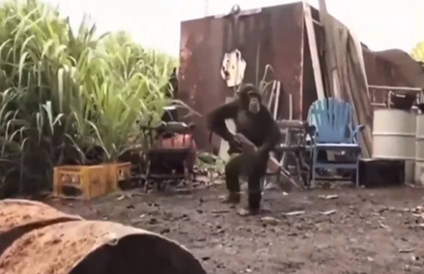 एक बंदर तो बंदूक थाम आसपास बैठे लोगों को बंदूक से फायरिंग कर आतंकित कर देता है। देखते ही देखते वहां मौजूद लोग भागने में ही अपनी भलाई समझते हैं। वहीं, एक बंदर अपना पुट्ठा दिखा शख्स को चिढ़ाता नजर आता है।