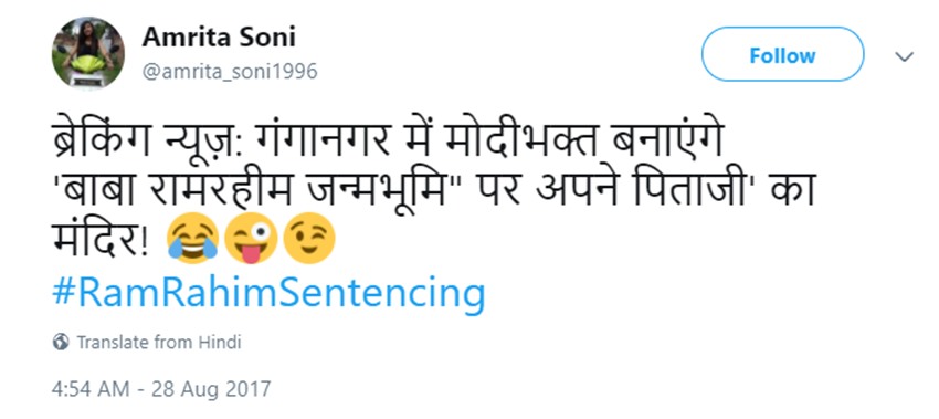For next ten years 6 crores people requires a “Baba”.#RamRahimSentencing— Gautam Mazumdar (@gautam_icma) August 28, 2017