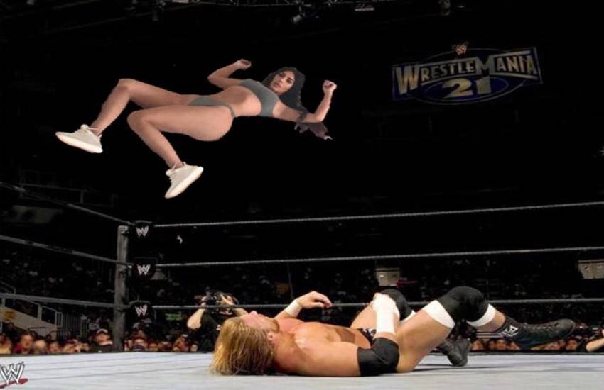 KIMMY K FROM THE TOP ROPE! OHHH MA GAWD!!! OH MA GAWD!!! #Butter350 #Yeezy pic.twitter.com/BSmj4htssI