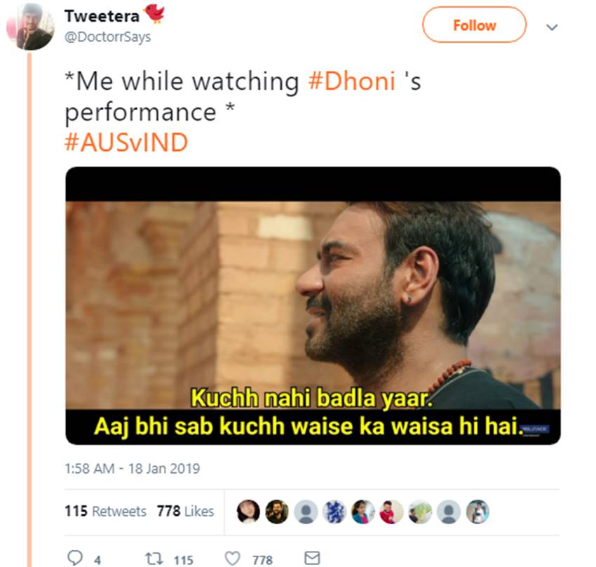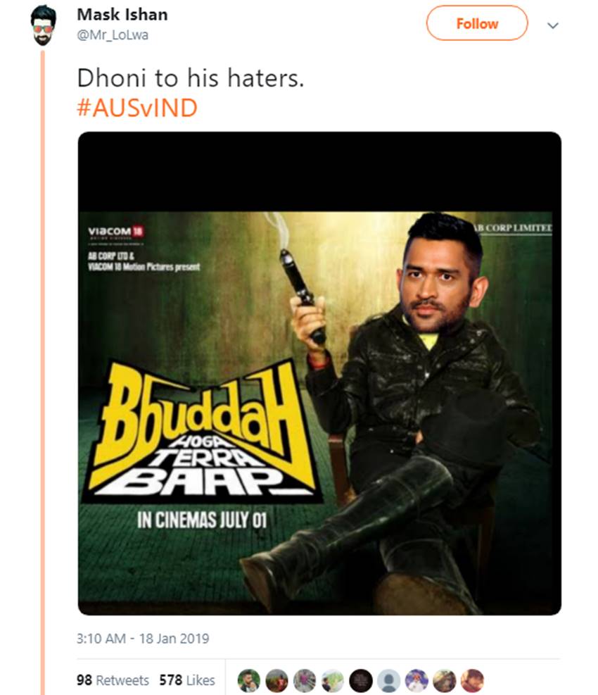 सोशल मीडिया पर भी महेंद्र सिंह धोनी की शानदार बल्लेबाजी की जमकर चर्चा हो रही है। इतना ही नहीं महेंद्र सिंह धोनी को लेकर कई तरह के MEMES और जोक्स भी शेयर किए जा रहे हैं। लोग अलग-अलग तरह से महेंद्र सिंह धोनी की प्रशंसा कर रहे हैं। इन MEMES को देखकर आप की भी हंसी छूट जाएगी।