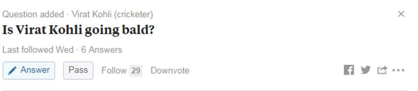 इंडिया में एक बात बड़ी कॉमन है, वो यह कि हम भारतीय किसी भी जाति-धर्म और जगह से आएं, जवाब देने में यकीन नहीं रखते हैं और सवाल करने में एक्सपर्ट होते हैं। दर्जनों सवाल तो हमारी टिप पर रखे रहते हैं, बस मुंह खोला और फट से सवाल निकल पड़ा। आजकल तो सोशल मीडिया ने खास तौर पर इसके लिए सुविधा उपलब्ध करा रखी है। लोग इसका फायदा भी जी भरकर उठा रहे हैं, जो मन में आ रहा है, गोली की तरह सवाल दाग दे रहे हैं। ऐसी एक वेबसाइट कोरा (Qora) पर टीम इंडिया के कप्तान विराट कोहली के बारे में लोगों ने अनगिनत सवाल पूछे हैं। लेकिन उनमें से यहां हम कुछ चुने हुए खास और मजेदार सवाल आपके सामने रख रहे हैं। हो सकता है कि आपके पास इन सवालों के जवाब हों। लेकिन शर्त एक है कि इन सवालों को पढ़कर कोई सिर नहीं खुजलाएगा और पेट पकड़कर नहीं हंसेगा!