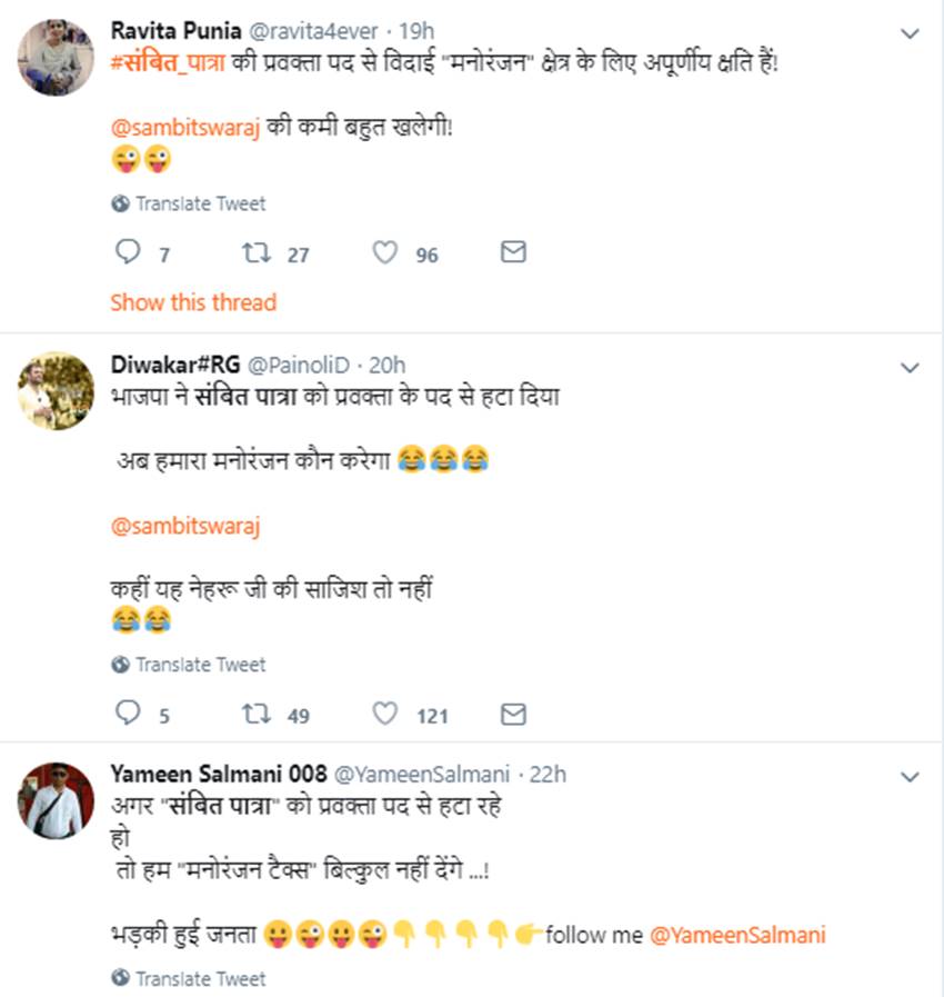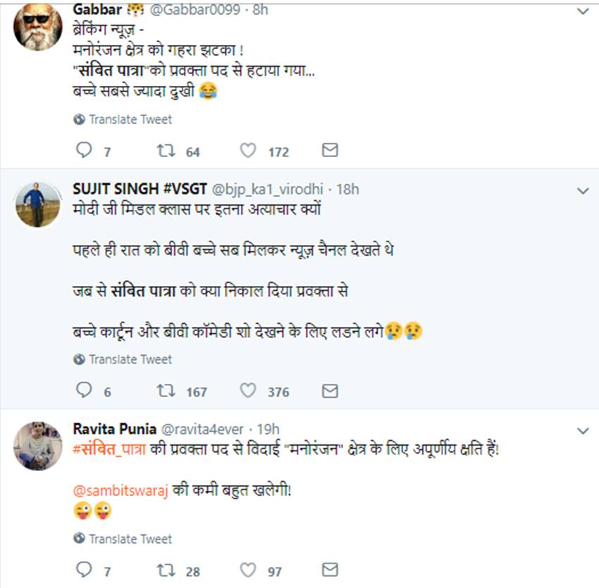 बहरहाल भले ही सोशल मीडिया पर इस तरह की प्रतिक्रियाओं की बाढ़ जरुर आ गई है लेकिन इन बातों में कोई दो राय नहीं की संबित पात्रा को पद से हटाए जाने की बातें महज अफवाह हैंं।