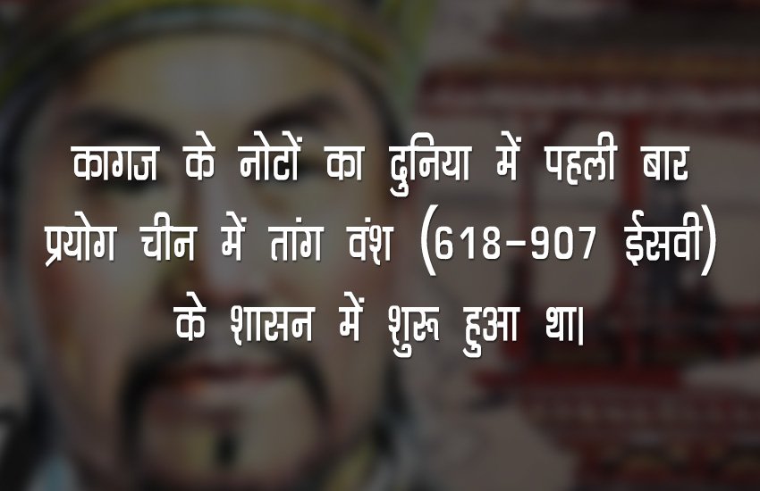 नरेंद्र मोदी सरकार द्वारा 500 और 1000 के नोट बंद करने के बाद भारत में ये सर्वाधिक चर्चित विषय बन गया है। पुराने नोटों को बंद करने और 2000 और 500 के नए नोट जारी करने के बीच हम आपको बैंक नोटों से जुड़ी 10 ऐसी बातें बताएंगे जो शायद आप पहले नहीं जानते होंगे। कागज के नोटों का पहली बार प्रयोग चीन में तांग वंश (618-907 ईसवी) शुरू हुआ था। हालांकि तांग शासन में आम तौर पर निजी लेन-देन में कागज के बने बिल या एक्सचेंज नोट का इस्तेमाल होता था। इसके करीब 500 साल बाद यूरोप में 17वीं सदी में कागजी नोटों का इस्तेमाल शुरू हुआ। स्वीडन कागजी नोट इस्तेमाल करने वाला पहला यूरोपीय देश बना। लेकिन बाकी दुनिया में कागजी कई सौ साल बाद प्रचलित हुए। इस बीच चीन में कागजी नोटों का उत्पादन बढ़ गया था लेकिन उनका मूल्य काफी कम हो गया था। नतीजतन, चीन ने 1455 में कागजी नोट पूरी तरह बंद कर दिए। इसके बाद चीन ने कई सौ साल बाद दोबारा कागजी नोटों जारी करने शुरू किए।