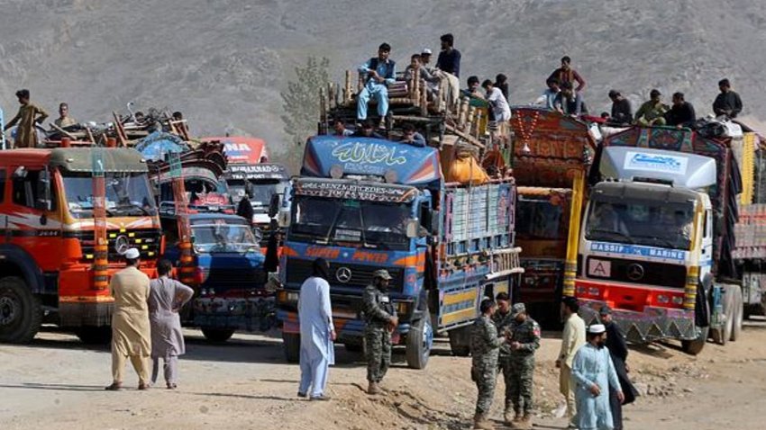 पाकिस्तान के नौशेरा के अजाखेल शहर में संयुक्त राष्ट्र शरणार्थी उच्चायुक्त (UNHCR) के प्रत्यावर्तन केंद्रों के बाहर अफगान शरणार्थियों की लंबी लाइन लगी हुई है। पाकिस्तान द्वारा बिना दस्तावेज वाले आप्रवासियों को वहां से चले जाने की आखिरी चेतावनी देने के बाद अफगान शरणार्थियों को घर लौटते हुए सामान से लदे ट्रकों में देखा जा सकता है।