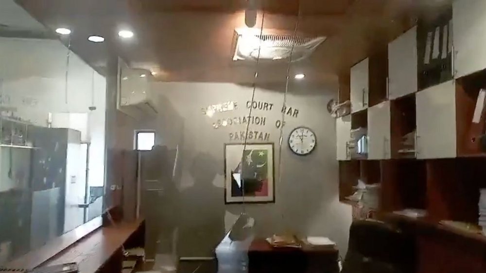 पाकिस्तान के सुप्रीम कोर्ट में धमाके के बाद के कई वीडियो सोशल मीडिया पर वायरल हो रहे हैं। धमाके की वजह से सुप्रीम कोर्ट बिल्डिंग के अंदर के कुछ हिस्सों को नुकसान पहुंचा है। वायरल वीडियो में फर्श पर खून के धब्बे दिखाई दे रहे हैं। जिस जगह धमाका हुआ, वह स्थान पाकिस्तानी सुप्रीम कोर्ट के बेसमेंट में स्थित है। धमाके के बाद सुप्रीम कोर्ट के बाहर रिकॉर्ड किए गए कुछ अन्य वीडियो में बिल्डिंग से वकील निकले नजर आ रहे हैं।