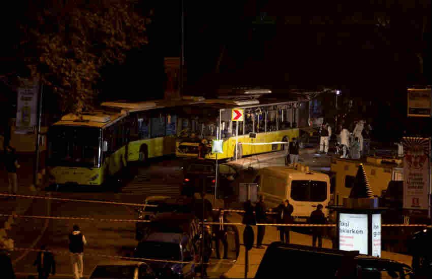 हमले की जिम्मेदारी फौरन किसी ने नहीं ली। सरकारी अनाडोलू एजेंसी ने कहा कि एक इरसीयस विश्वविद्यालय के प्रवेश द्वार पर कार बम विस्फोट हुआ जिसने सार्वजनिक परिहवन की एक बस को प्रभावित किया जिसमें अन्य यात्रियों के साथ ही छुट्टी पर गए सैनिक भी सवार थे। यह विस्फोट इस्तांबुल में एक मैच के बाद फुटबॉल स्टेडियम के बाहर तैनात पुलिस कर्मियों को निशाना बनाकर किए गए कार विस्फोट के एक हफ्ते बाद हुआ है। उस हमले में 44 लोग मारे गए थे जिसमें से ज्यादातर पुलिसकर्मी थे और कई अन्य जख्मी हो गए थे। उस हमले की कुर्दिश आतंकवादियों ने जिम्मेदारी ली थी जो सेना और पुलिस को निशाना बनाता है।